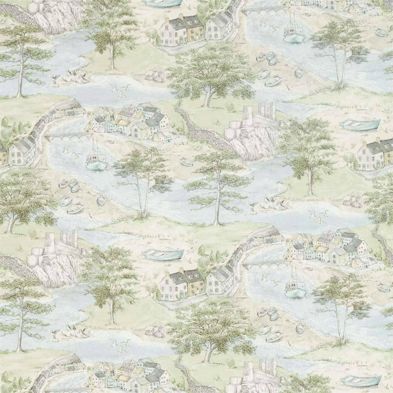 Sanderson - Sea Houses - Tidewater Blue - Professionally Made Roman Blind Made to Measure